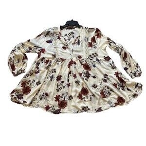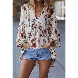 Max Jeans Boho Flowy Floral Blouse Babydoll Size MED Boho Hippie Bohemian top blouse floral shirt Women's Size M flowy, roomy gorgeous top. In excellent preowned and like new condition.