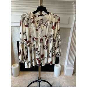 Max Jeans Boho Hippie Cow Girl Flowy Floral Blouse Size MED.