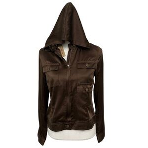 Max Jeans Cargo Hooded Jacket Zip Up Silk Blend Brown Size Small NWT Retail $92
