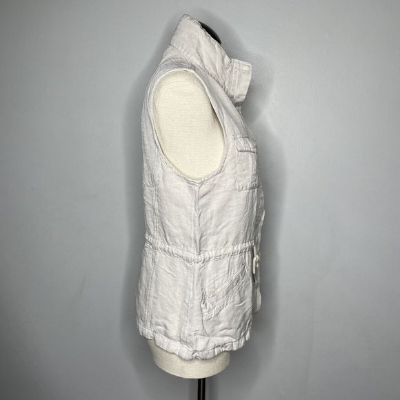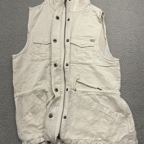 Max Jeans Linen Vest Women Medium Beige Multi Pockets Coastal Gandma Sleeveless