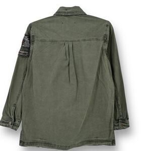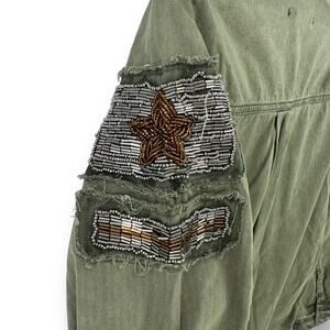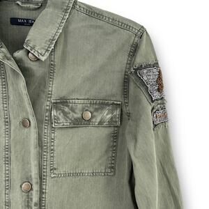 Max Jeans Military Beaded Utility Jacket Womens Size Medium Washed Olive Green