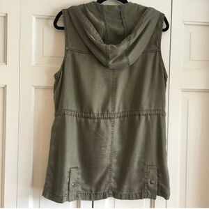 Max Jeans Olive Green Patch Pocket Vest w/ Hood Women's Medium M Tie Waist EUC
