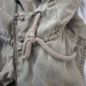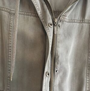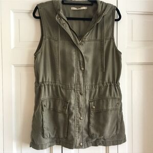 Max Jeans Olive Green Patch Pocket Vest w/ Hood Women's Medium M Tie Waist