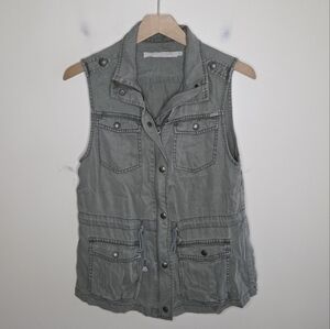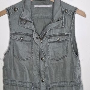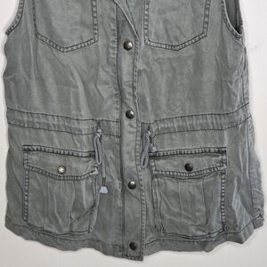 Max Jeans | Olive Green Utility Cargo Vest Zip Button Front Size XS