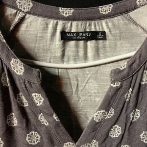Grey paisley long sleeve top with cinched waist by Max Jeans. Size small.