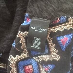Max Jeans Small Black Top Geometric Print on Back Long Sleeve Cotton Blend