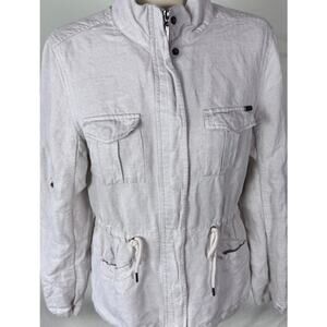 Max Jeans Small Linen Rayon Oatmeal Beige Full Zip Cinch Waist Jacket