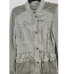 Max Jeans Tencel Jacket Womens Medium Army Green Boho Cottagecore Biker Grunge Jacket Military