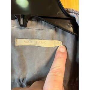 Max Jeans Vest Waterfall Drape Front Military Gray Tencel Utility Medium has inside tie , pockets pit to pit 22” length 25” (3015)