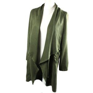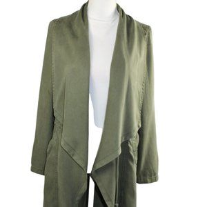 Max Jeans Vetiver Khaki Olive Green Long Drape Front Collar Boho Jacket…