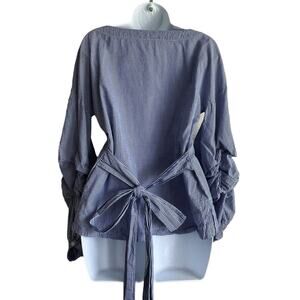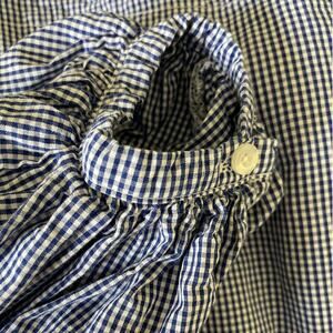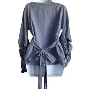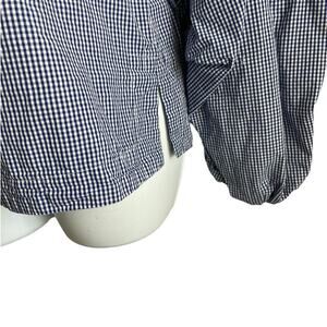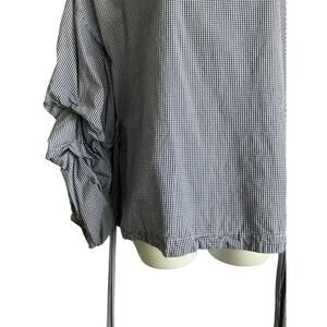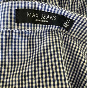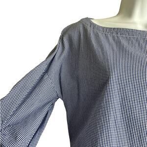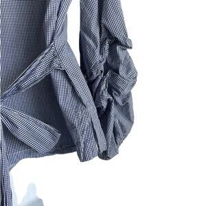 Max Jeans Women Top S Blue Small Checkered Tiered Puff Sleeve Back Tie Preppy