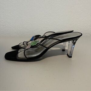 Max Lugus Couture Lucite Heel Sandals Stone Bead Detail Butterfly Size 9