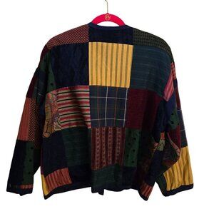 Max & Mabel Vintage Mixed Media Patchwork Plaid Metallic Unique Jacket Size 1X