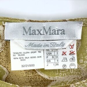 MaxMara 100% Silk Short Sleeve Blouse Top Size 2 Floral Leaf Print Green Yellow