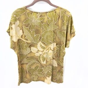 Max Mara 100% Silk Short Sleeve Blouse Top Size 2 Floral Leaf Print Green Yellow