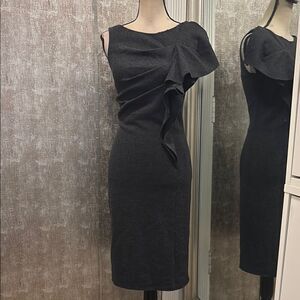 Chic gray dress with a stylish ruffle detail. Perfect for formal occasions. Sleeveless design. worn once, excellent condition