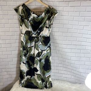 Max Mara Abstract Floral Center Pleat Dress Sz 2