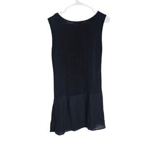 Max Mara Black Sleeveless Tunic Top Silk Hem Linen Blend Minimalist