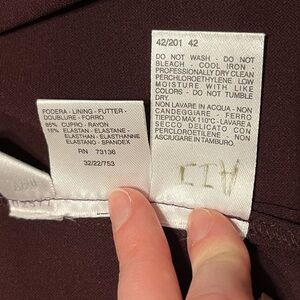 Max Mara burgundy/maroon open front blazer. This comes with a matching thin sash belt. Has light shoulder padding. Front has a long lapel neckline and hangs open, no buttons or hooks. Sleeves have a small slit at wrists. Tagged as a size 8, measures approximately 19 inches pit to pit and 24 inches long. In excellent condition with no flaws.