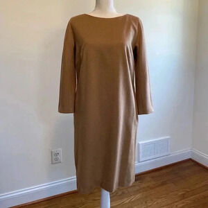 Max Mara Brown Camel Hair Long Sleeve Shift Dress Size 10