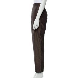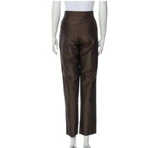 Max Mara Brown Straight Leg Silk Side Zip Pants