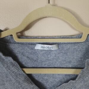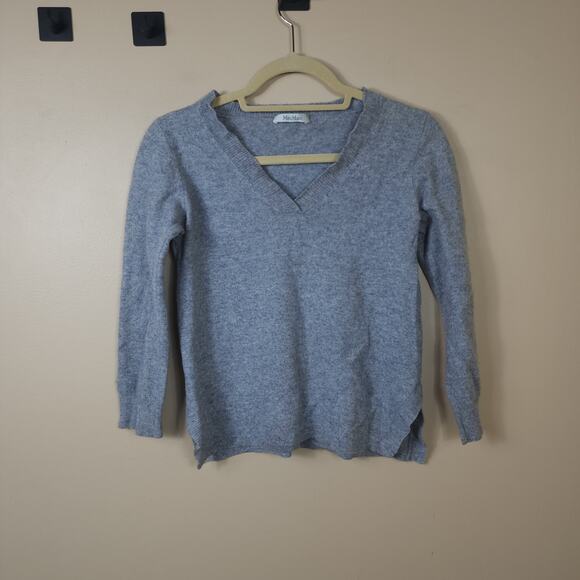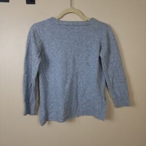 Washed and feels like it might be shrunk. Please see photos for measurements. Gray in color. V-neck sweater.