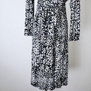 Max Mara IT 42 US 8 Soft Jersey Knit Tie Waist V Neck Dress Black Leopard Print