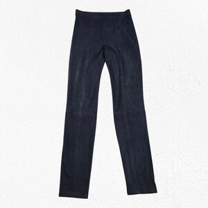 Max Mara Leisure Black Faux Suede Matte Jersey Straight Slim Pants Size Medium