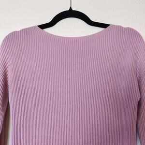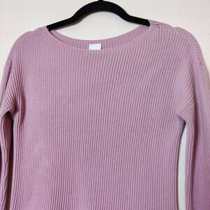 Max Mara Leisure Blush Pink Rib Knit Long Sleeve Crew Sweater Medium Side Slit
