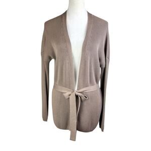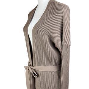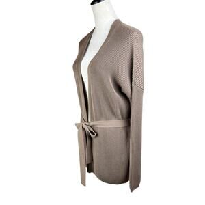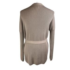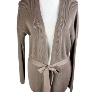 Max Mara Leisure Neutral Brown Ribbed Knit Long Sleeve Belted Cardigan Sweater