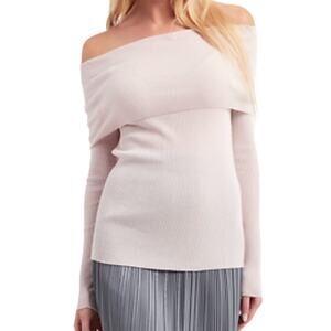 Max Mara NWT Leisure Lorena Top Light Pink Size XS Off Shoulder 100% Wool Ribbed