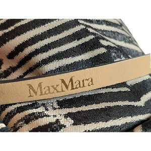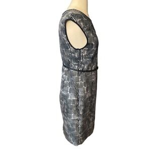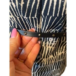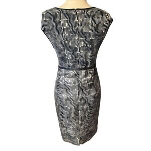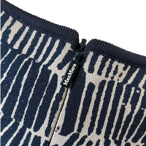 Max Mara Navy Blue Cream Knee Length Dress with Leather Belt