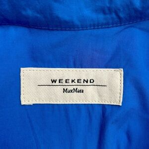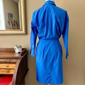 Max Mara Poplin Shirt Dress Royal Blue Long Sleeve Side Tie Button Front Size 4