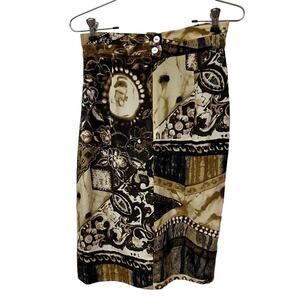 Max Mara Pura Seta 100% Silk Baroque Faux Wrap Pencil Skirt 27" Waist Made Italy