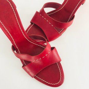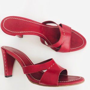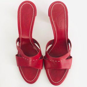 Max Mara Red Top-Stitched High Heel Mule Italy Size 41/9