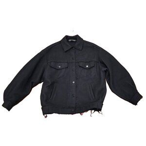Sportmax Black Wool Blend Jacket Women’s Frayed Hem Boxy Fit Raw Edge Italian Made Size 2 / 34
