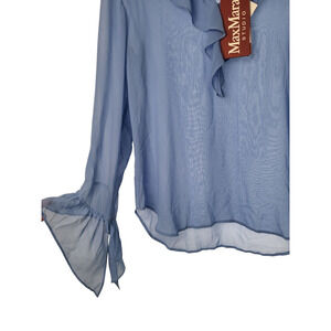 Max Mara Studio ALBARTO Ruffled Silk Blouse Size 8 NWT BLUE