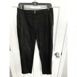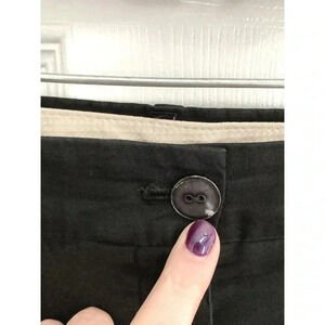 97% cotton, 3% elastic, so there’s a slight stretch. Belt loops for a classic black belt.