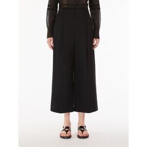 Max Mara Studio Sz 12 Cotton Cropped Trousers Pants Black Pleated Front Italy