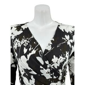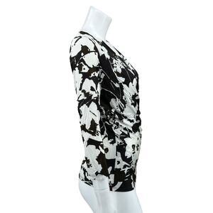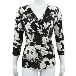 Max Mara Top Women Medium Abstract Floral Surplice Wrap Ruched Work Quiet Luxury