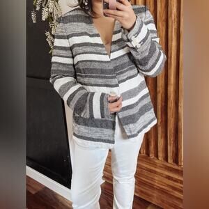 Max Mara Tweed collarless Striped Relaxed Blazer. Size 14