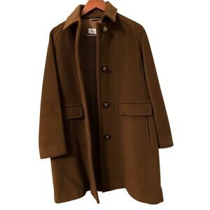 Max Mara Virgin Wool Cashmere Coat US 8 Brown Collared Barn Chore Coat Luxury
