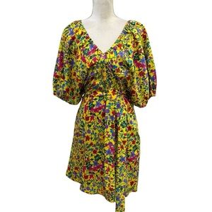 Max Mara Weekend Curvone Cotton Yellow Floral V-Neck Belted Dress NWT $485