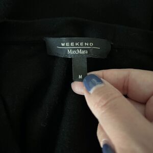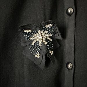 Max Mara Weekend Knit 3/4 Sleeve Cardigan Sweater in Black with Embellished Bow Pin. Excellent used condition with no flaws. Size Medium.