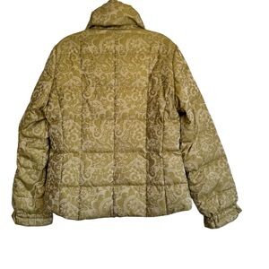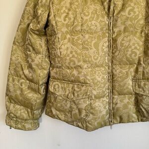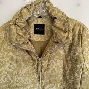 Max Mara Weekend Puffer Jacket Coat Green Floral Jacquard Print Size US 10