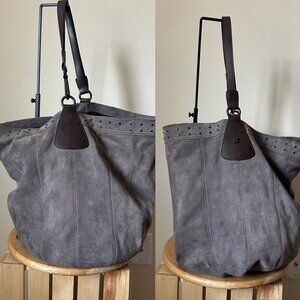 Max Mara Weekend Suede Leather Studded Shoulder Bag Large Slouchy Minimalist