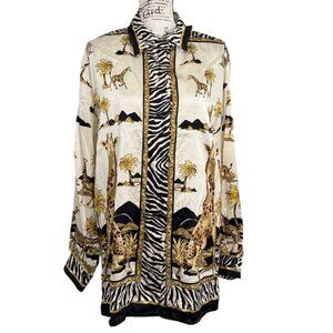 Max Mara Weekend Top Sleeveless Button-Up Light Blue Embroider Butterfly Size M
