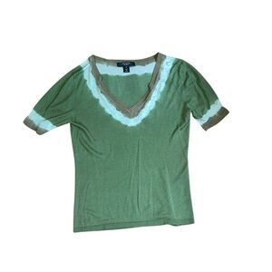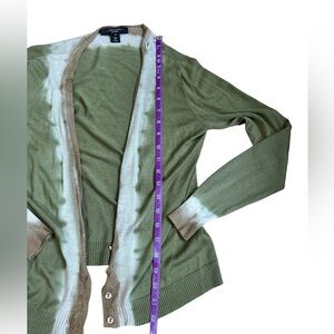 Weekend Max Mara Twin Set. Cardigan And Top. Green Tie Dye print, photos make this look more of a khaki/brown but is a brighter green in reality.