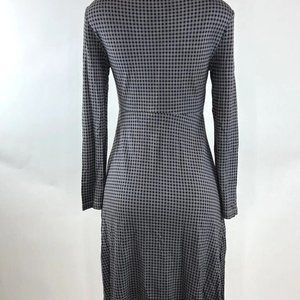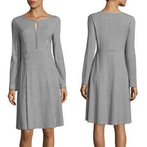 Max Mara Weekend Urbana Flare Dress Grey Gingham Check Plaid Keyhole Long Sleeve