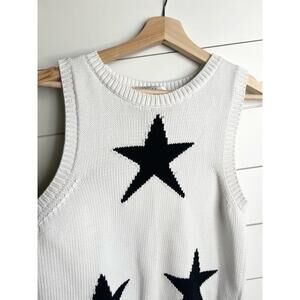 Max Mara White Sleeveless Knit Black Star Pattern Sweater Tank Top Size Large